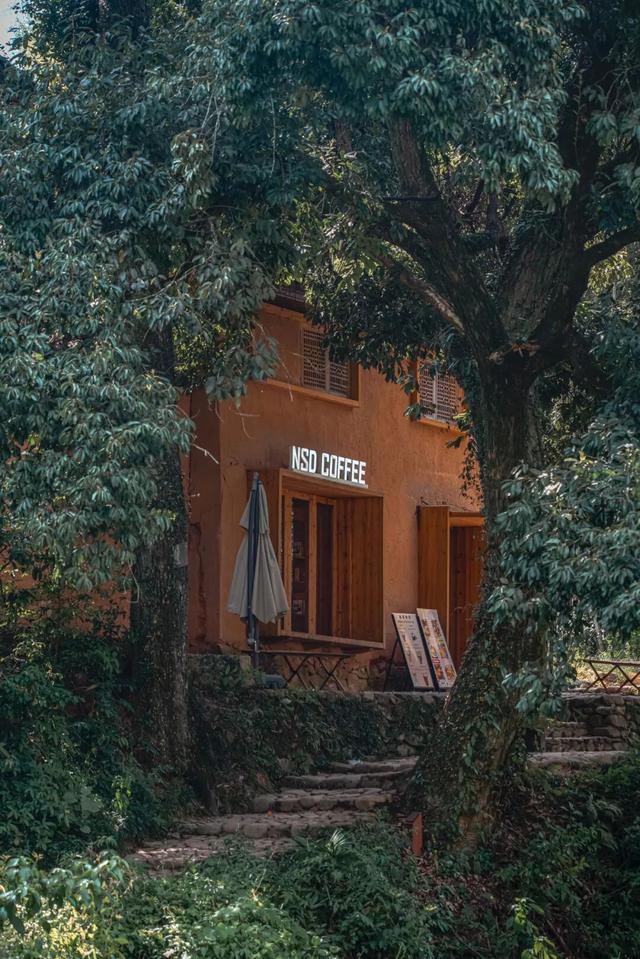 樢咖啡由老屋改造而成,房子与房子间有一棵笔直生长的大树。咖啡店位置极佳,视野开阔,可以看见更低处的西坑村。