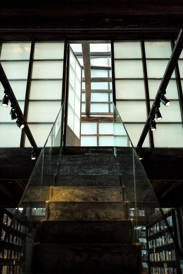 陈家铺村还有两个著名网红拍照点,一个是先锋书店的阶梯休憩区,透过落地玻璃窗能看到绵延的山脉。另一个是先锋书店与飞茑集民宿之间的巷道,巷子深处就是一片常年翠绿的竹海。
