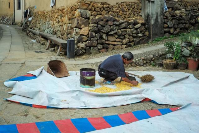 陈家铺村一年四季都很美,夏天枝叶繁茂,冬天常有雾凇,但我更推荐大家秋天来。一年一度晒秋之时,村民们把蒸好的番薯拿出来晾晒,制成番薯干。那时候整个村庄都是黄澄澄的,像一幅油画。