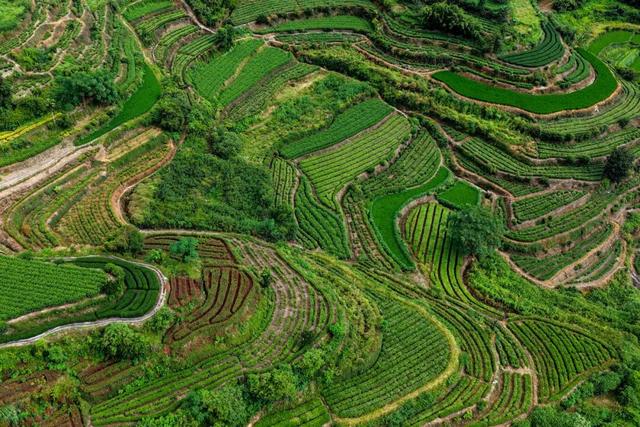 陈家铺村坐落于海拔约850米的绵延山岗上,是一个有着600多年历史的崖居式古村落。民居呈阶梯式分布,无人机飞一下就很出片。