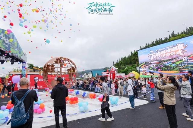 除了荔波的美,贵州各处同样人潮涌动。黔西南州兴义市万峰林景区则以“潮玩”元素解锁文旅新体验。作为核心商业综合体的峰潮集正式开市,80余家多元业态品牌汇聚在集装箱建筑群中,融合山地潮玩、特色美食与布依文化基因。