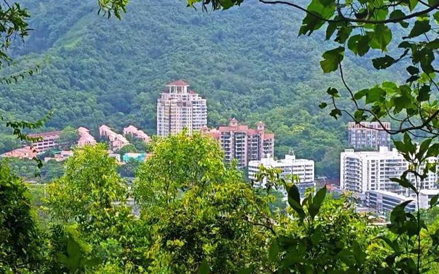 这是其中一个观景平台,近处绿意盎然,远处高楼林立,最远的地方是香港的群山,风景层次感十足。