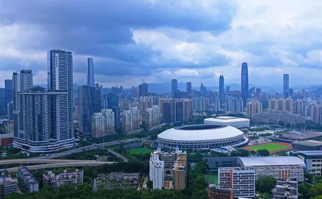 上面那个角度也非常好,近处是深圳新改造的深圳市体育中心,包括深圳体育场和深圳体育馆,体育场如天外飞碟。远处是罗湖区3栋超高层摩天楼,分别是442米的京基100,385米的地王大厦,333米的云启大厦。