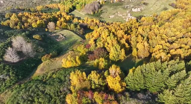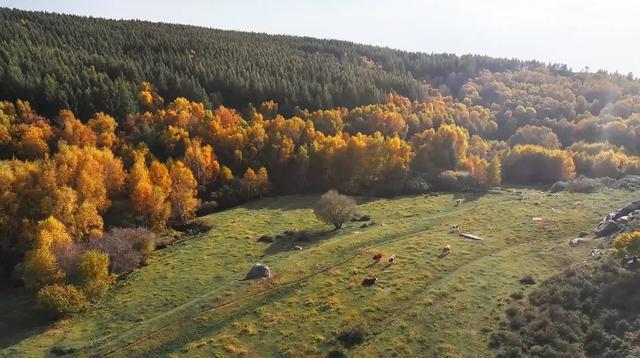 当第一缕秋风擦过南天门的林海,整座山便像浸在了温乎的蜜里,裹着化不开的秋意——坡上的草甸褪成了奶黄,谷底的白杨举着满枝金箔,丛生的沙棘坠着橙红小果,连石缝里的苔藓、路边的枯草,都蒙着层秋日特有的鎏金薄光。每一幕都像从名家油画里裁下来的,连光影都带着笔触的细腻。