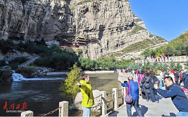 即便假期已过,景区内依旧游人如织,游客们踏上栈道,近距离感受古建筑的惊险奇绝,驻足观赏 “壮观” 石刻,在静谧氛围中体悟三教合一的深厚文化底蕴,沉醉于这份独属于秋日的古建之美。