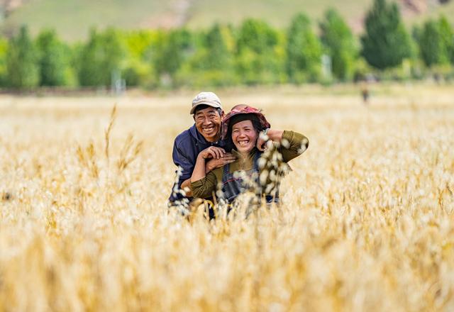2025年9月23日,西藏拉萨市林周县松盘乡岗巴村农民喜迎丰收的笑脸。 新华社记者 丁增尼达 摄