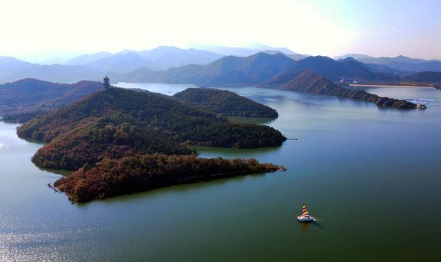 2021年10月23日拍摄的北京市平谷区金海湖景区内景(无人机照片)。新华社记者 任超 摄