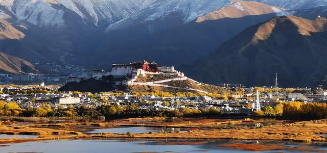 2022年10月29日,从拉鲁湿地方向遥望布达拉宫。深秋已至,位于西藏拉萨的世界文化遗产布达拉宫在高原秋色的衬托下分外美丽。 新华社记者 沈虹冰 摄