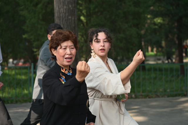 在天坛公园,大V们亲身体验了太极球、太极拳等中国传统养生文化。巴林的Hamed对太极球的平衡之道赞不绝口,巴勒斯坦的Anood则自豪地展示了她七年太极拳学习的成果,并热情推荐给大家。随后,大V们乘坐铛铛车游览中轴线,漫步于前门大街,书中的场景跃入现实,让大家对北京的古都新韵有了更深的理解。