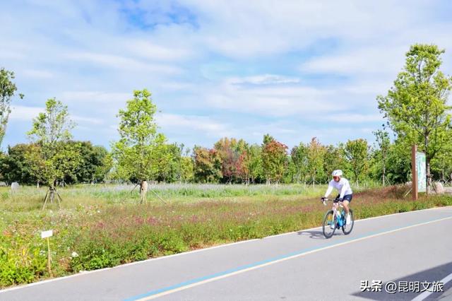 环滇绿道徒步、骑行:全长3.45公里,串联翠堤、芦堤、七孔浮桥和草堤,沿途保留原生植被,可观赏芦苇荡、桉树林和滇池湿地风光。最大程度保留原生植被,草长莺飞,四季景色各异(春鸢尾、秋芦苇、冬红嘴鸥)。部分区域设有花海、观景台,适合森系写真或放空散步。