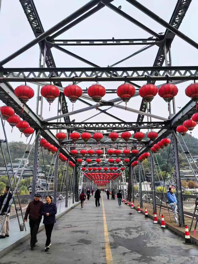 铁虹卧浪接秋光,风送涛声入渺茫。最是斜阳金洒处,一城烟火半城霜。