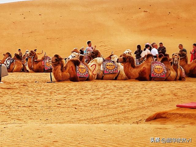 这里瞬间成了一个喧闹而又寂静的神秘世界。沙丘如凝固的金色海浪,连绵起伏,线条柔和而有力。悠扬的驼铃是这画卷里的古老诗篇,驼队载着游客,在不慌不忙的节奏里,将影子长长地印在沙坡上。与之形成鲜明对比的,是沙漠摩托车狂野的嘶鸣,它们像现代的铁骑,在古老的沙地上划出激情的轨迹。还有那从高耸沙丘上一跃而下的划沙者,身影矫健,带起一溜金色的烟尘。