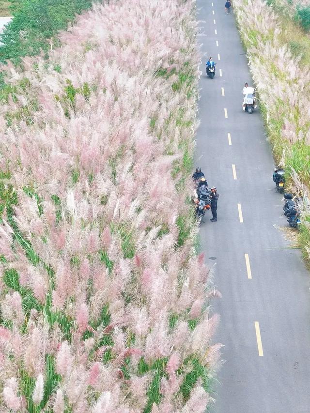 在成都生活了这么多年,直到现在才发现双流舟渡村居然有这么美的沿河粉色芦苇荡。特别是这条河滨的公路,两侧被高高的芦苇丛包围,自驾、骑行、散步在这条路上用无人机航拍非常浪漫!芦苇太高,只有在无人机视角下拍出来才更好看!