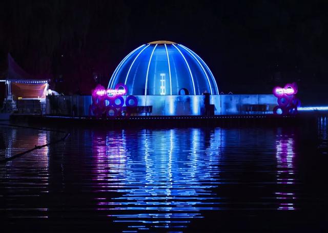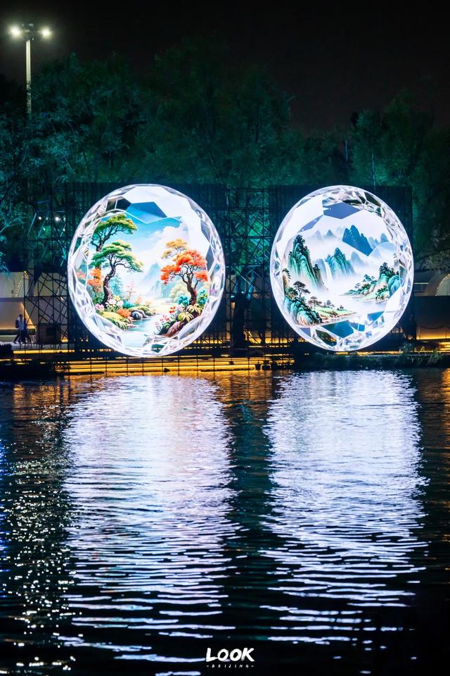 构成一条贯穿水上与岸边的夜间艺术长廊