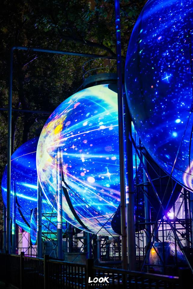 三座直径约5米的球形储气罐被光影悄然唤醒