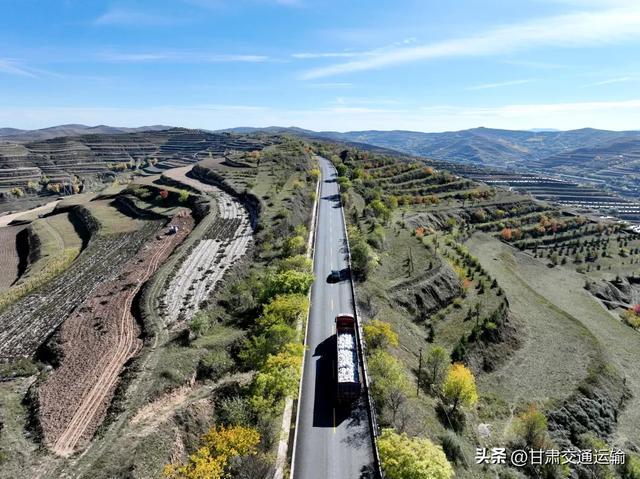 位于通渭县的省道208线马云公路,是一幅会动的田园诗画。雨后初晴,天空像是被洗过一样蓝,公路笔直地穿过层层叠叠的梯田,远处的梯田已染上深褐的土色,金黄的杨树点缀其间,墨绿的草丛顺着山梁蔓延,像是有人用画笔在大地上晕染出的色彩。通渭人爱书画,路边的农家院里,墙上挂着主人自己作的字画,孩子们也趴在桌上,用稚嫩的笔触临摹着字帖。秋日丰收时,红色的山楂、褐色的苦荞麦堆在车厢里,果香混着墨香,顺着公路散开,让每一个路过的人,都能感受到陇中农耕文化的诗意与温情。