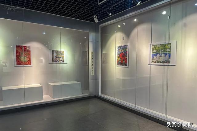 展厅内,百余幅画作可以用色彩斑斓来形容,笔触间仿佛满是对生活的热爱,有趣的是在其间夹杂着很多类似梵高和毕加索的画风,它们跳出了传统艺术的框架,在尤其鲜艳的色块堆叠下,显得格外抽象且夸张,当然,还有好看。