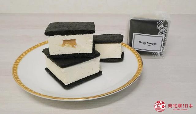 擅长香草甜点制作的「Hugh Morgan」的实体店铺仅有「日本桥三越本店」一间。招牌甜点「香草奶油饼干」非常受到欢迎,若想吃的话建议早点来排队。这款混合竹炭的黑色饼干内,夹着入口即化的香草白兰地调味奶油馅,里面还包覆着带有咸味的香草酱,一口咬下内馅即会溢出在口中,口感相当特别。