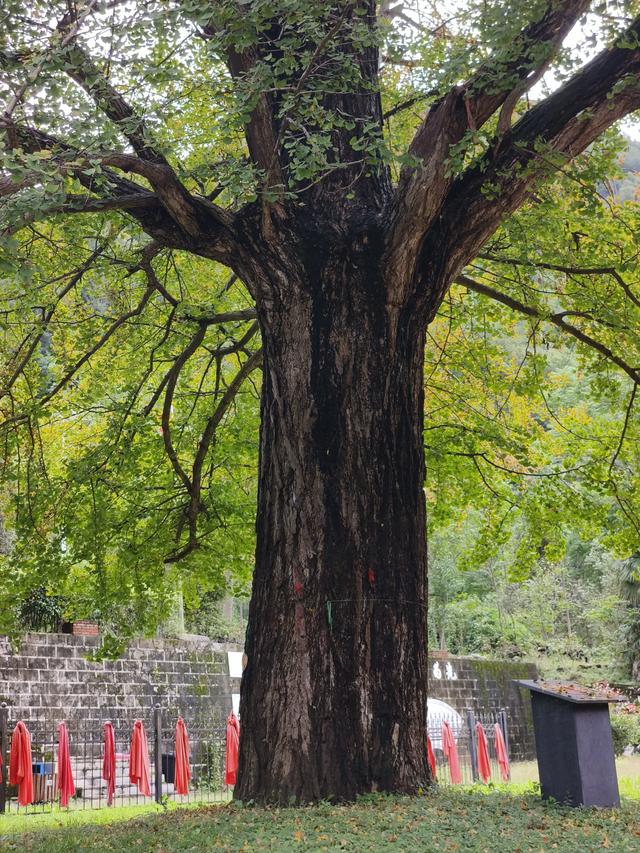 午后的阳光变得柔和,先去三教殿村仙果寺广场。推开寺门,释迦牟尼、老子、孔子三座神像静静伫立,而广场旁那棵1500年的古银杏,才是真正的“时光见证者”。粗壮的树干需几人合抱,枝叶如伞盖般铺开,若逢秋日,金黄的叶子落满地面,踩上去沙沙作响,仿佛在诉说千年的故事。