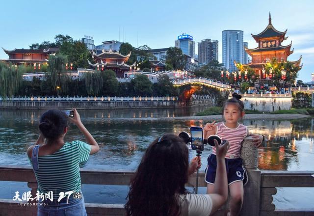 游客在甲秀楼景区拍照留念。乔啟明 摄