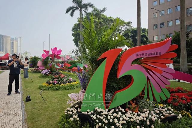 从礼宾楼步出后,访客可漫游花园区。今年的花卉展以“第15届全国运动会”为主题,超过20种花卉精心布置成大型装置,与象征粤港澳区域融合的吉祥物“喜洋洋”和“乐融融”相映成趣,营造充满生气与活力的全运会氛围。