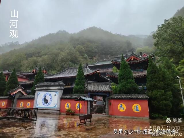 山河观又称山河庙、萧曹祠、酂邺祠(因萧何被封为酂侯、曹参被封为邺侯,故亦称酂邺祠)。 始建于宋庆历年间(1041-1048年),为纪念汉丞相萧何、曹参创修山河堰(又称萧何堰)造福汉中人民而建。山河观原址在河东店镇后街,毁于1981年特大洪水,2008年应民意重建于褒谷口南口的山腰处,山势雄伟,依山而建,规模宏大。内设灵官殿、斗姆殿、三清殿、三官殿、三圣殿、龙王殿、土地殿、萧曹祠等,塑有神像99尊,为陕南规模较大的道教场所。