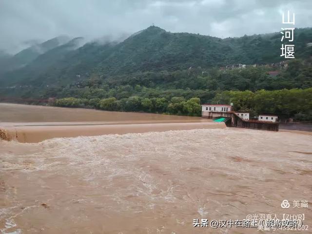 沿河而行,浊浪拍岸,水流湍急,奔涌向前。岸边古堰静卧,仿佛仍记得当年汉代萧何、曹参主持修建时的号子声声。这便是山河堰,始于汉,兴于宋,曾为汉中粮仓奠定根基。雨雾缭绕间,远山如黛,云锁峰腰,几处白墙灰瓦的屋舍隐现山腰,与林木共生,不扰自然半分清寂。