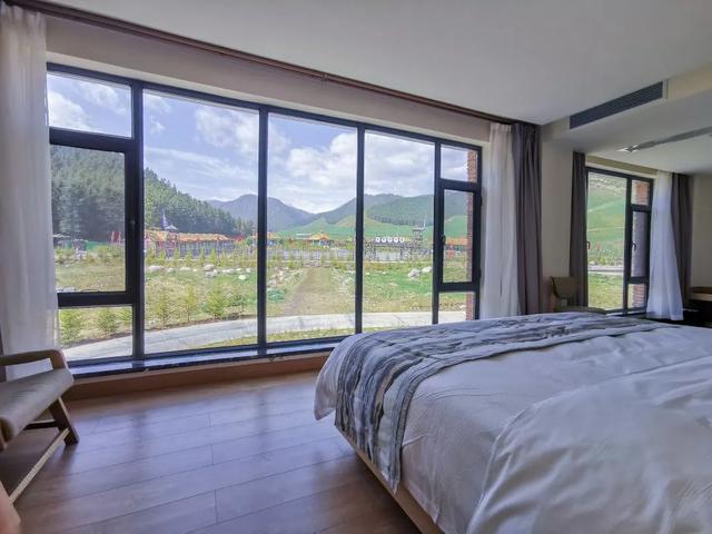 这里设有多种房型可供选择,满足不同游客的需求。(拉开窗帘就可以看见草原、林海、峡谷)