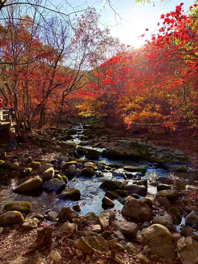 每年10月中旬,我县东部山区的枫叶便接近凋落,但今年老边沟景区的枫叶持续变红,游客依然络绎不绝。