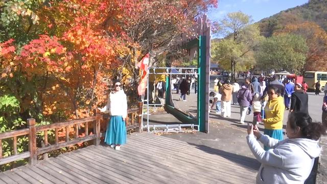 老边沟景区负责人 李俊岭:由于今年天气比较暖,枫叶变红的时间拉长,现在已经是十月下旬了,但是景区的枫叶还在持续变红,游客依然络绎不绝,也为我县旅游增添了更多的亮色。