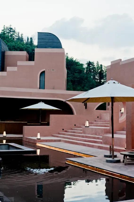 酒店独自拥有一片山谷,旁边就是潺潺溪谷,建筑与自然浑然天成,每个角落都值得驻足,是拍照打卡的绝佳地点。
