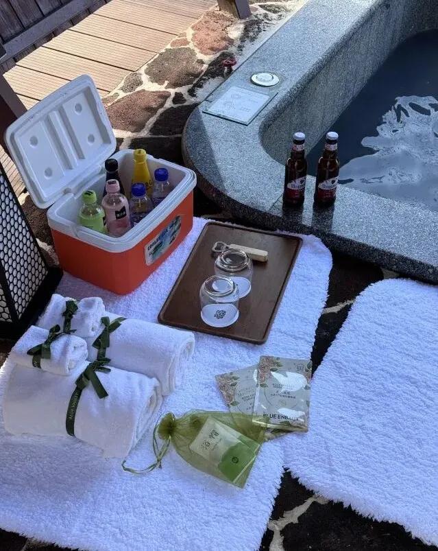 你可以选择在私汤庭院房的天台上,坐在花草环绕的餐椅边,泡进独立温泉池,仰望星空;