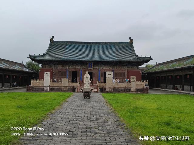 代州文庙始建于唐代,是华北现存最大的州级文庙。文庙的红漆大门斑斑驳驳,雨水洗刷着石狮子威武的面容,孔雀蓝色的琉璃顶在在雨中泛着幽光,门楣上“万仞宫墙”的字迹依然泛着金光。