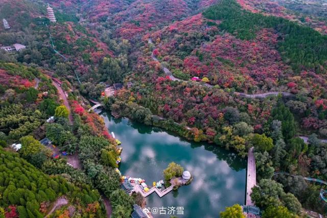 想把秋日的“红”与“水”揉成一幅画,红叶谷绚秋湖是必去之地。老舍曾写济南的秋“秋山秋水在这里虚幻地吻着”,而这份文字里的浪漫,此刻正完完全全照进绚秋湖的现实里。