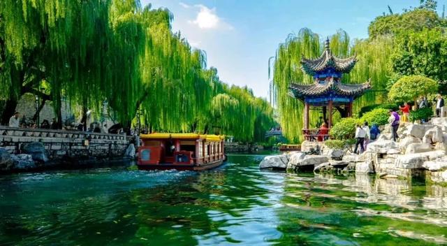 济南护城河则可以体验坐着游船逛济南的独特浪漫。从黑虎泉船站出发,游船沿着护城河缓缓前行,一边是青石板路、古桥流水,一边是或澎湃或温婉的清泉。