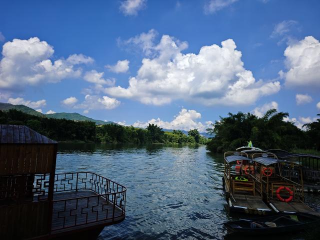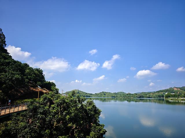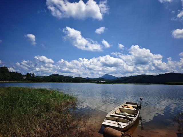 1、显岗水库:是惠州市第一座大型水库,显岗水库水域面积约15平方公里,以防洪、灌溉为核心功能,设计灌溉面积10.5万亩,防洪保护农田20.6万亩,年均发电量超350万千瓦时,被誉为“广东小洱海”。蓝天白云下,一只小船静静地停靠在碧绿的水面上,真有点像洱海的风景。