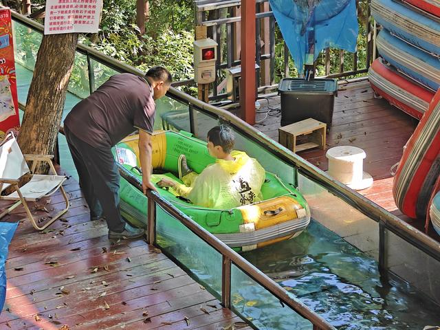 晚上就餐选择在一家当地餐馆,色香味俱佳。晚饭后步行到附近的罗浮山朱明洞景区免费夜游,只要在出口处进行微信扫码登记即可以进去,除了一些景点不开放,其它地方都可以游览。其中的玻璃漂流正常营业,该漂流要乘坐景区游览车到达狮子峰,然后从灌满水的玻璃隧道中盘旋而下,终点就是景区出口附近。